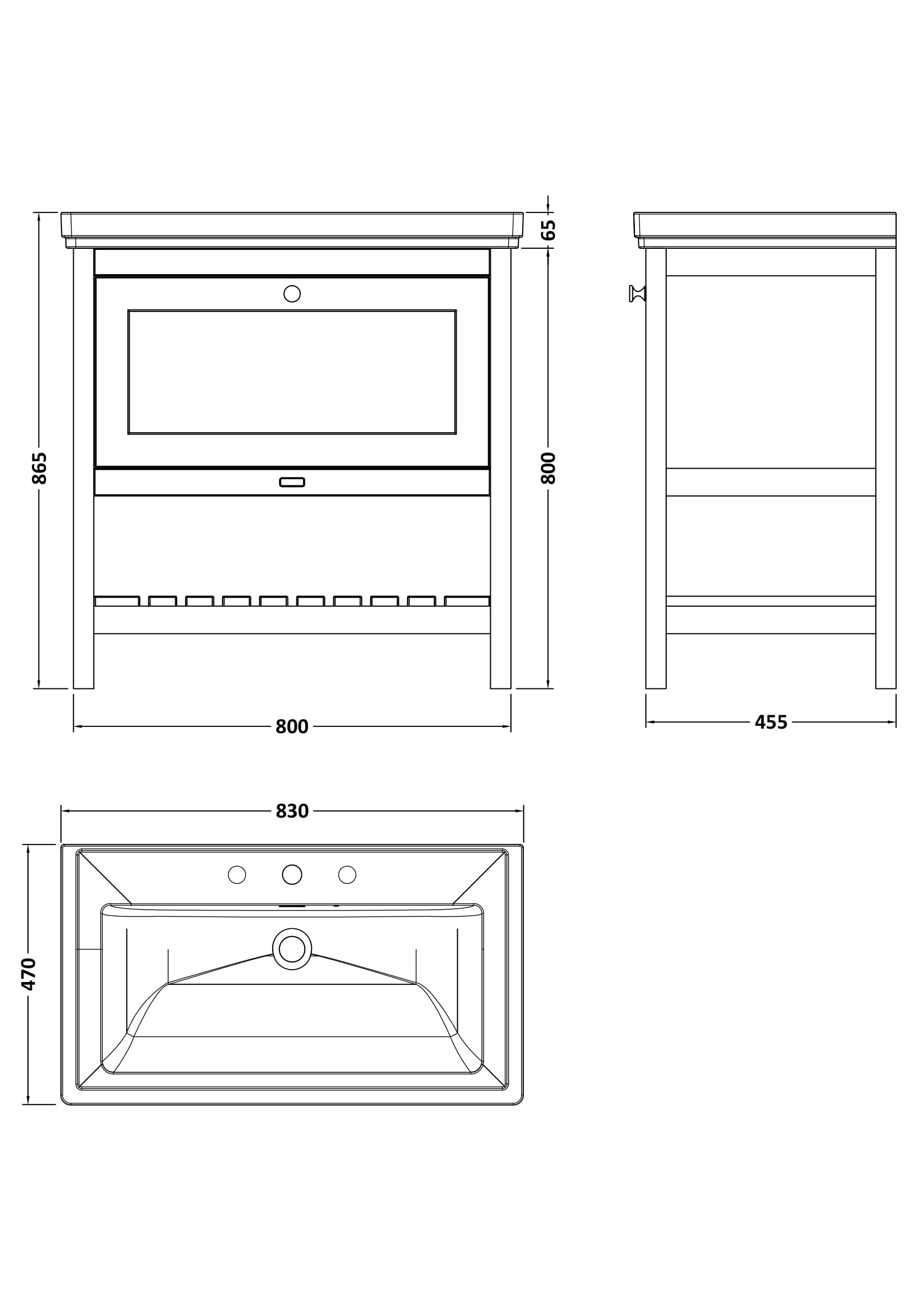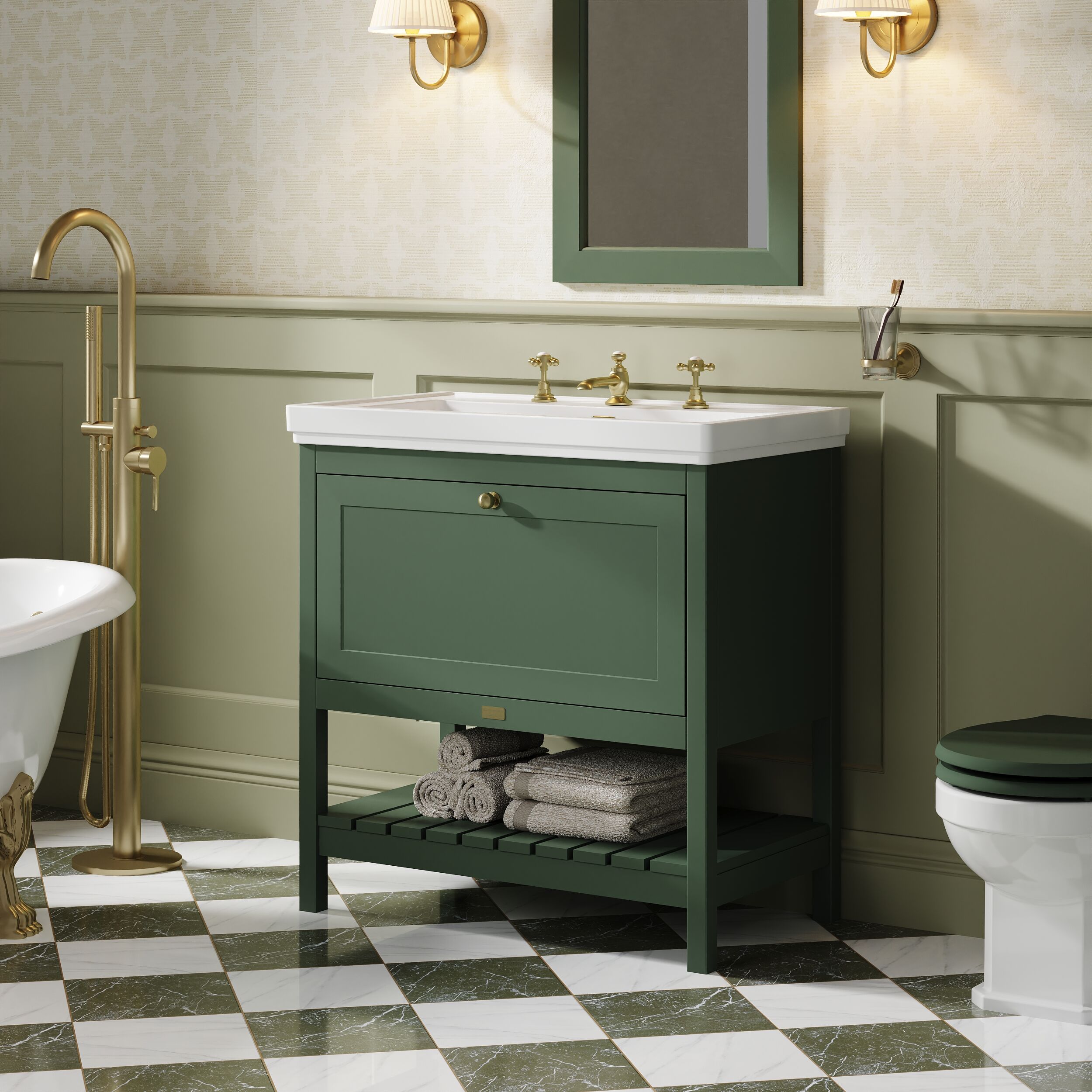 Bayswater Hartleigh 800mm Hunter Green Vanity Unit with 3 Tap Hole Basin