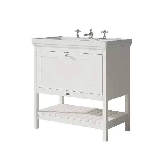 Bayswater Hartleigh 800mm Pointing White 1 Drawer Floor Standing Vanity Unit With 3 Tap Hole Basin