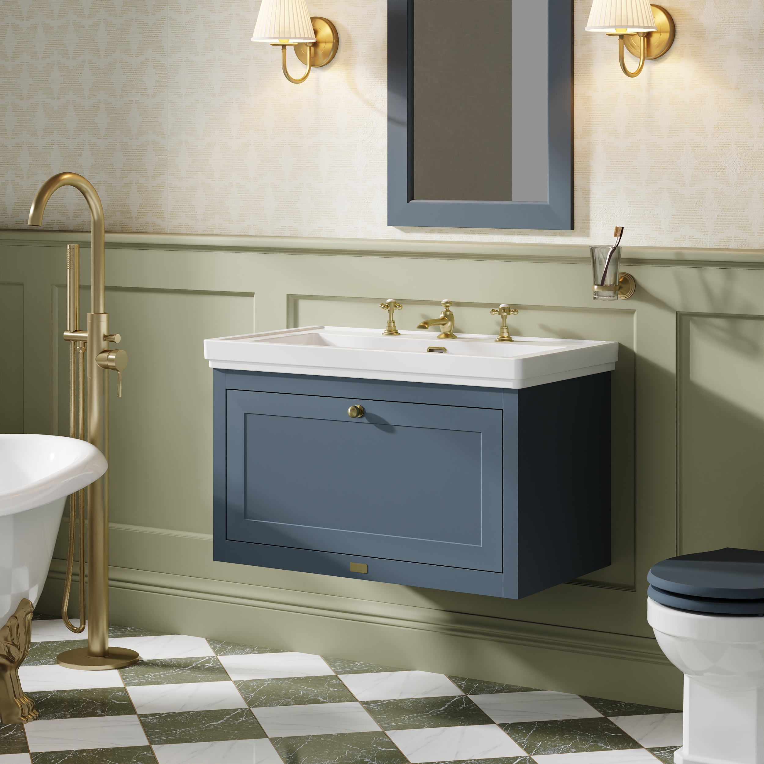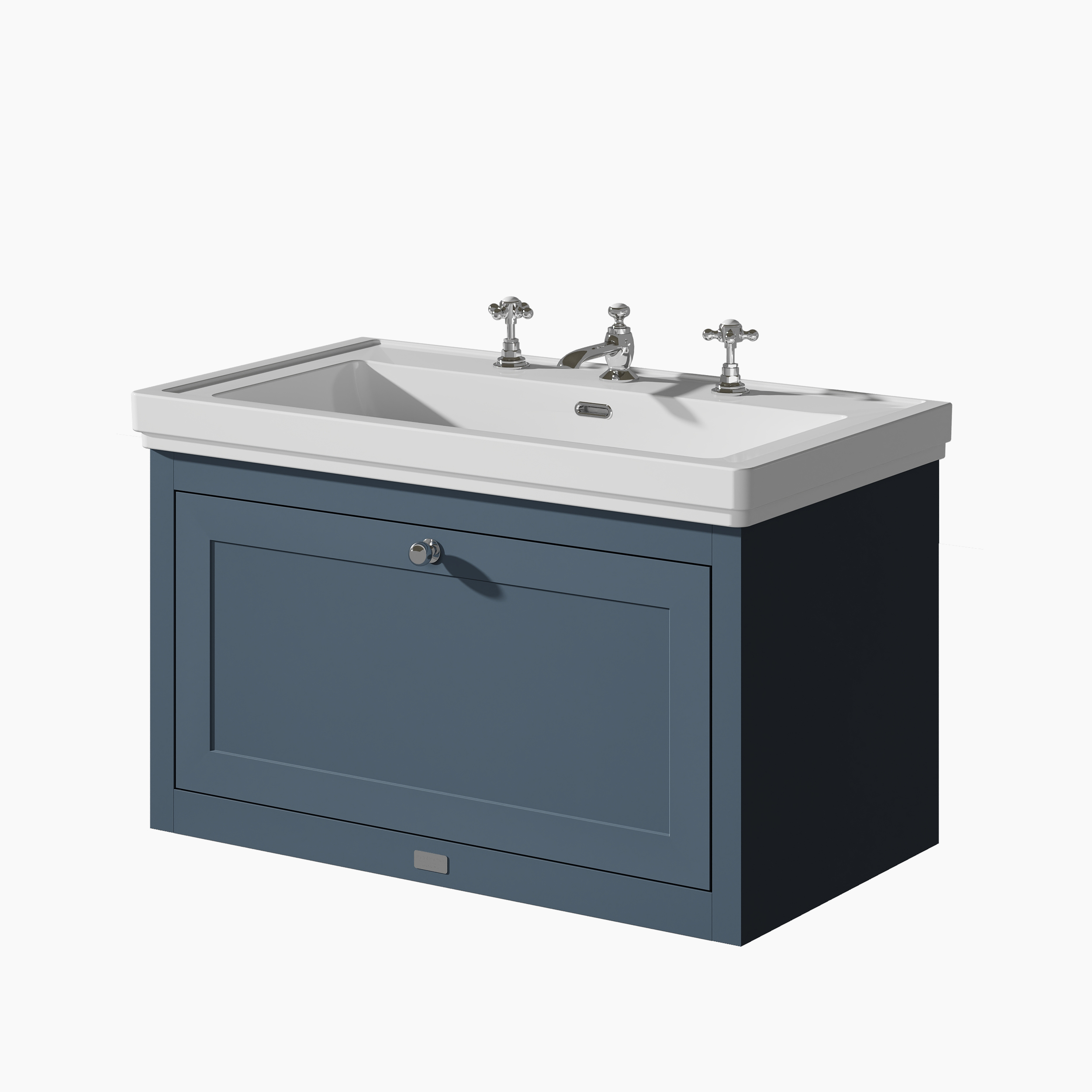 Bayswater Hartleigh 800mm Stiffkey Blue Wall Hung 1 Drawer Vanity Unit With 3 Tap Hole Basin