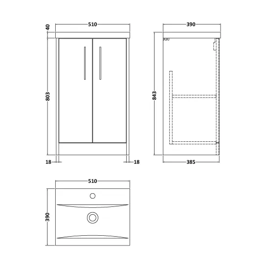 Contemporary floor-standing design provides ample storage for all your bathroom toiletries and cleaning supplies