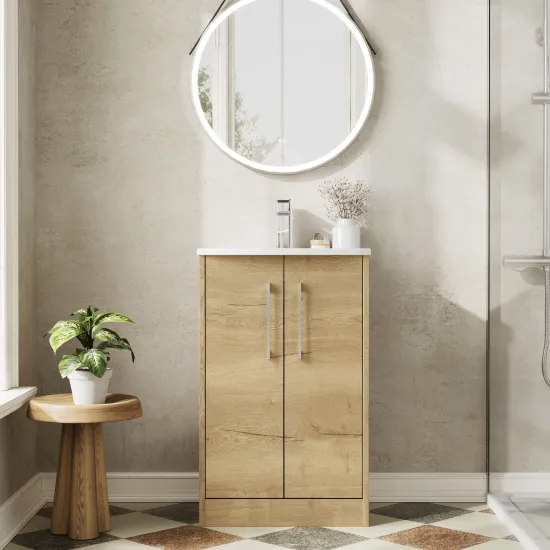 Hudson Reed Juno 500mm Autumn Oak Floor Standing 2-Door Vanity Unit With 1 Tap Hole Basin