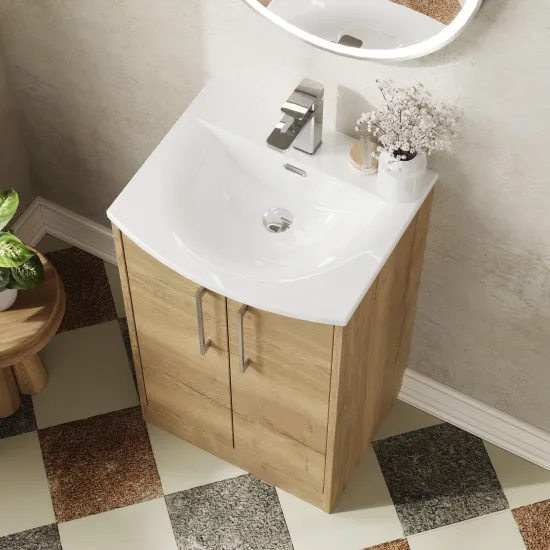 Hudson Reed Juno 500mm Floor Standing 2-Door Vanity & Curved 1 Tap Hole Basin - Autumn Oak