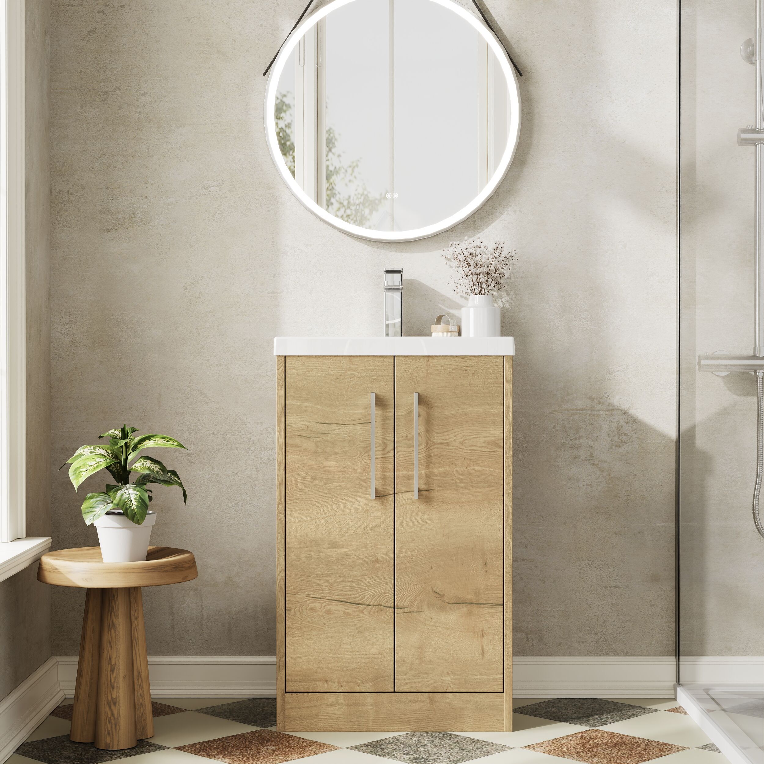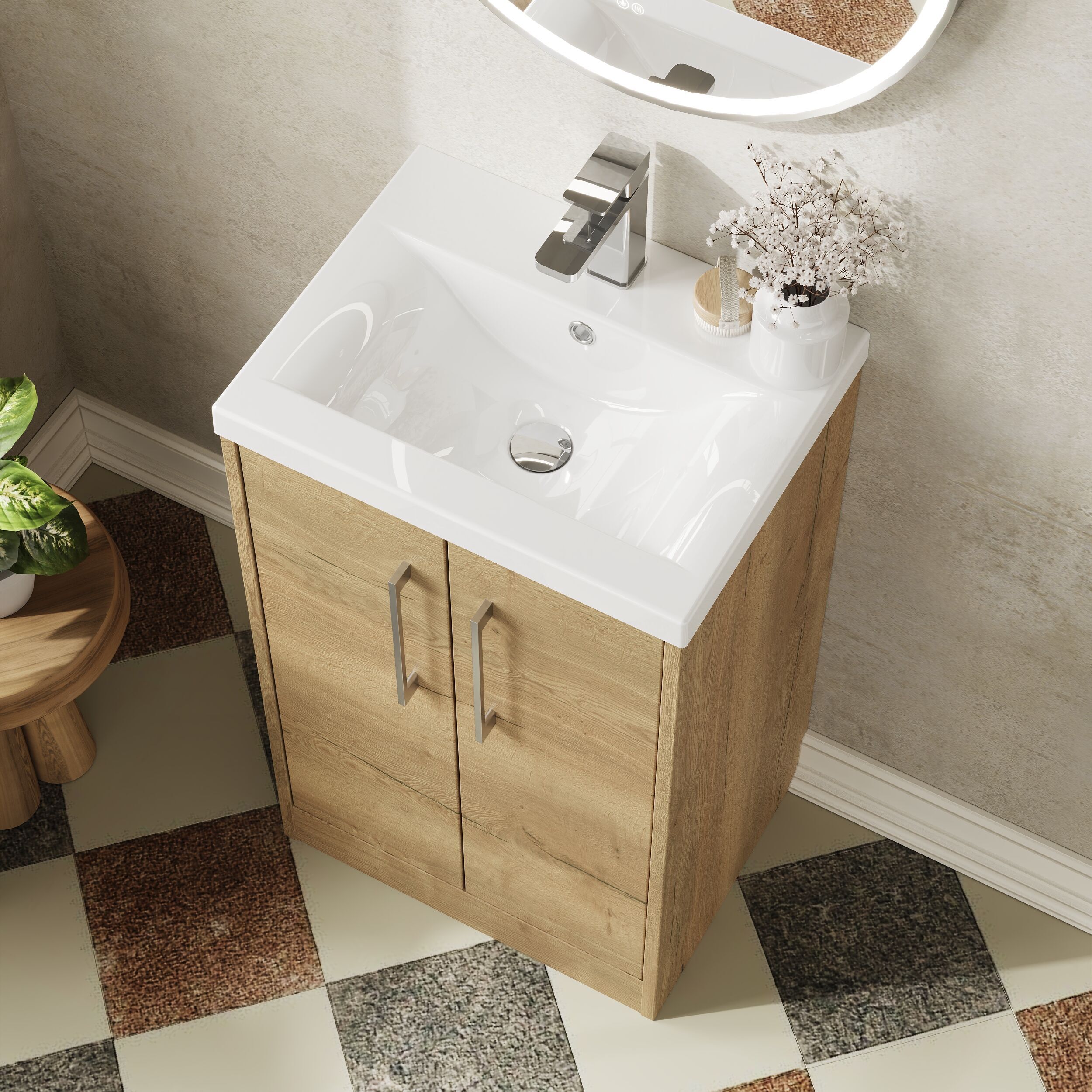 Hudson Reed Juno 500mm Floor Standing 2-Door Vanity & Mid-Edge 1 Tap Hole Basin - Autumn Oak