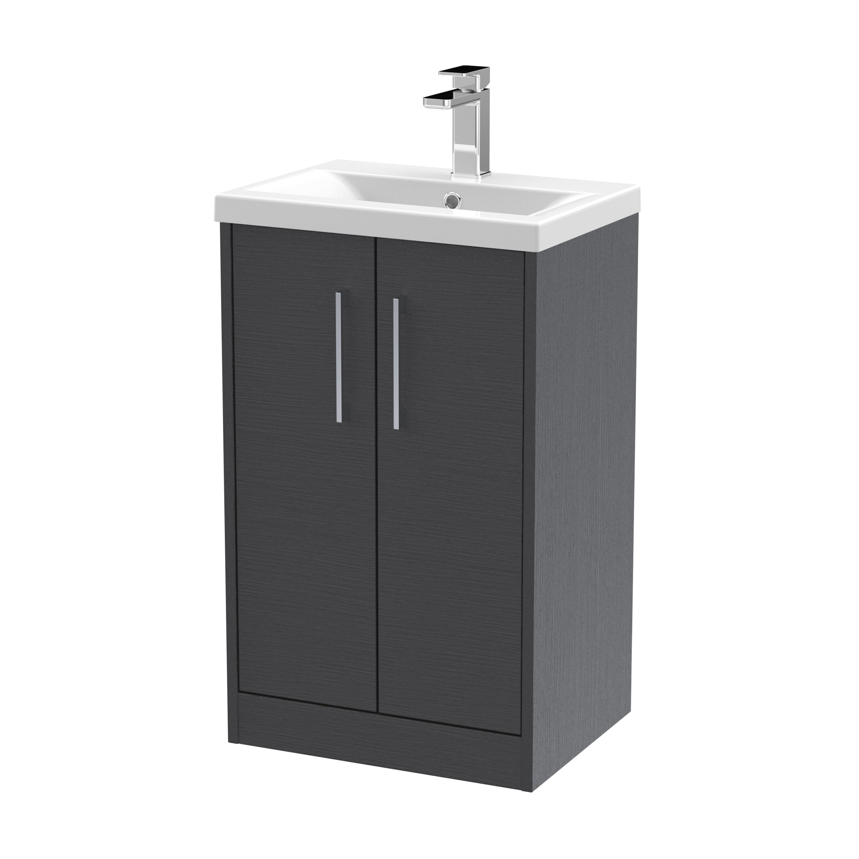 Hudson Reed Juno 500mm Graphite Grey Woodgrain Floor Standing 2-Door Vanity Unit With 1 Tap Hole Basin