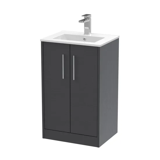 Hudson Reed Juno 500mm Floor Standing Graphite Grey Woodgrain Vanity & 1 Tap Hole Basin