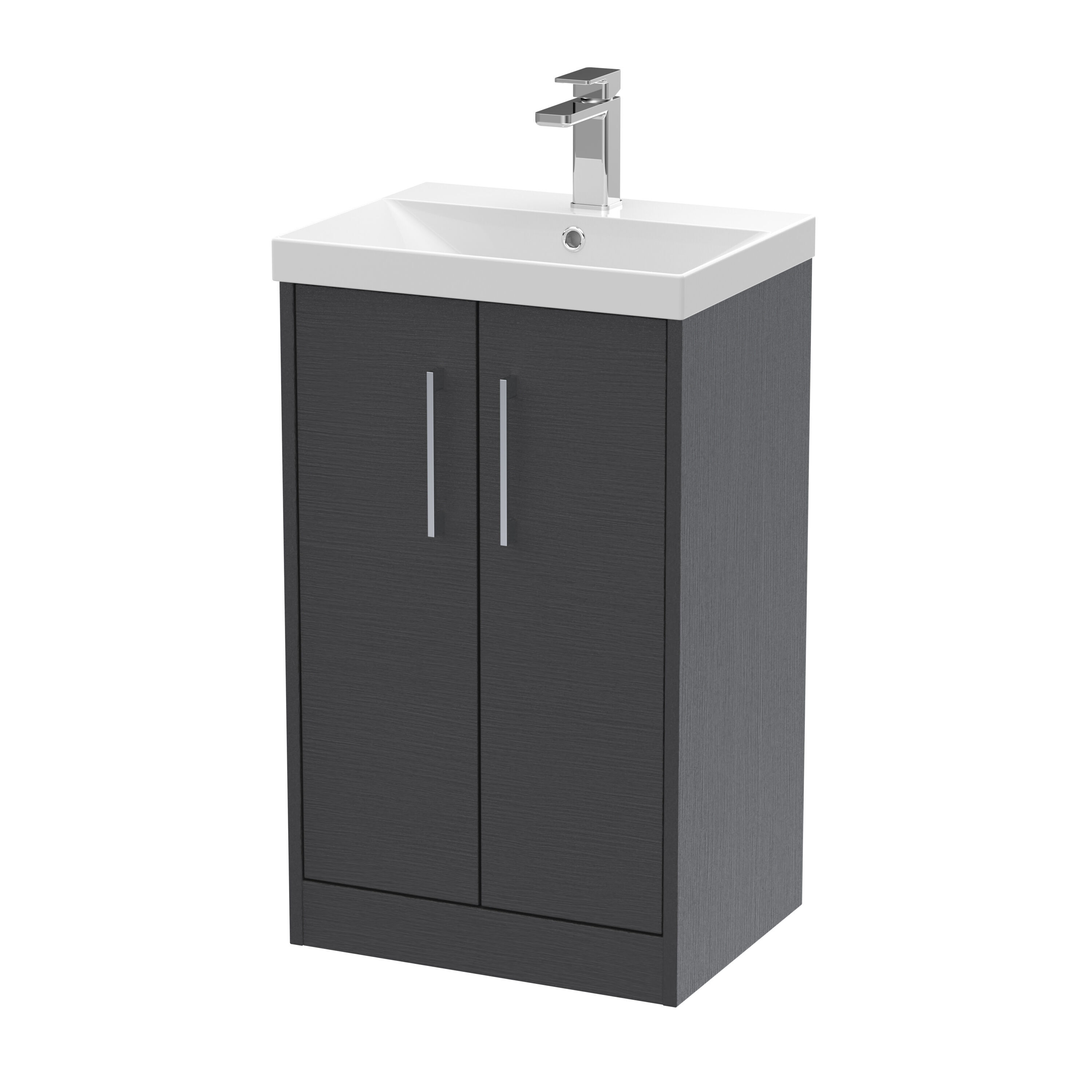 Hudson Reed Juno 500mm Floor Standing Graphite Grey Woodgrain 2-Door Vanity Unit with 1 Tap Hole Basin