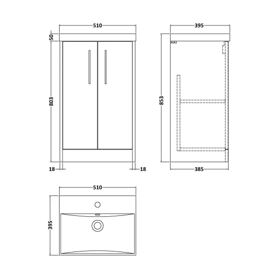 Contemporary floor-standing design provides ample storage for all your bathroom toiletries and cleaning supplies