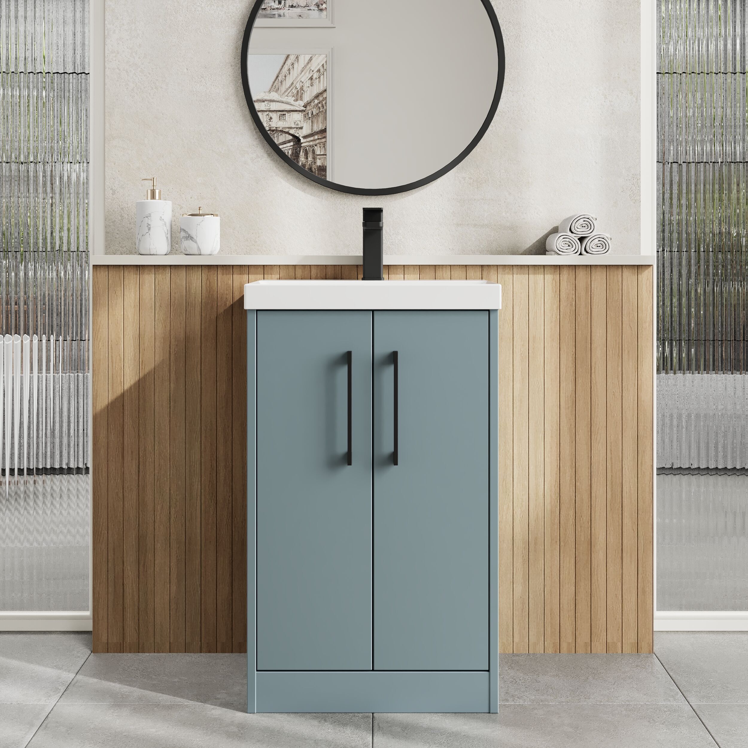 Hudson Reed Juno 500mm Floor Standing 2-Door Vanity & Thin-Edge 1 Tap Hole Basin - Coastal Grey