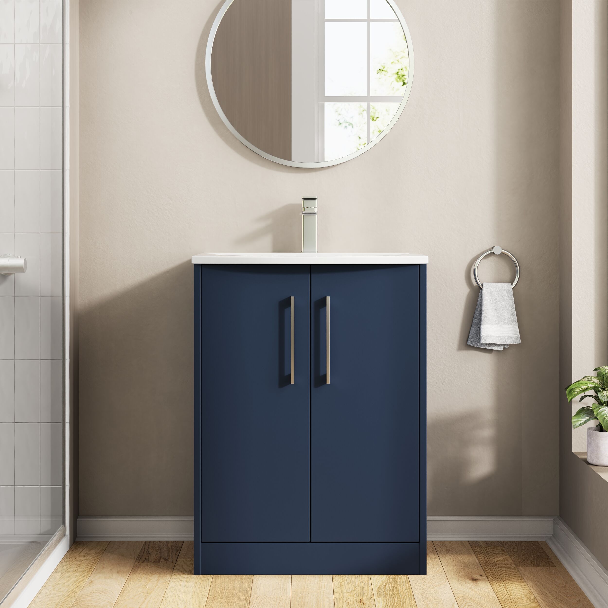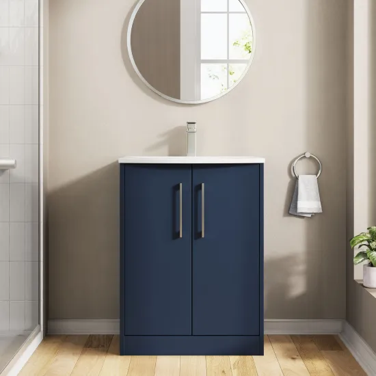 Hudson Reed Juno 600mm Floor Standing 2-Door Vanity & Basin 4 - Midnight Blue