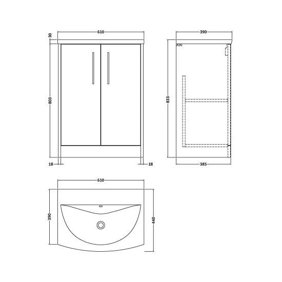 Hudson Reed Juno 600mm Floor Standing 2-Door Vanity & Curved 1 Tap Hole Basin - Coastal Grey