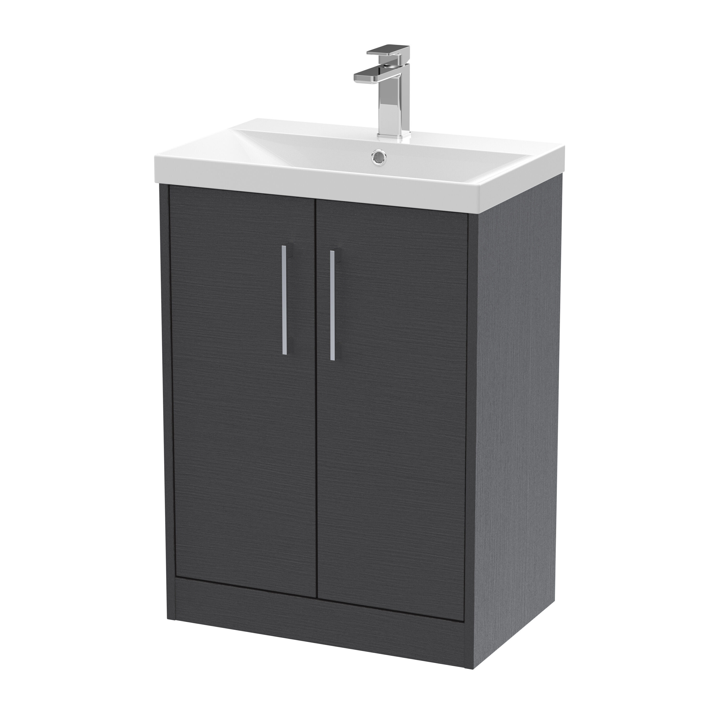 Hudson Reed Juno 600mm Floor Standing 2-Door Vanity & Thin-Edge 1 Tap Hole Basin - Graphite Grey