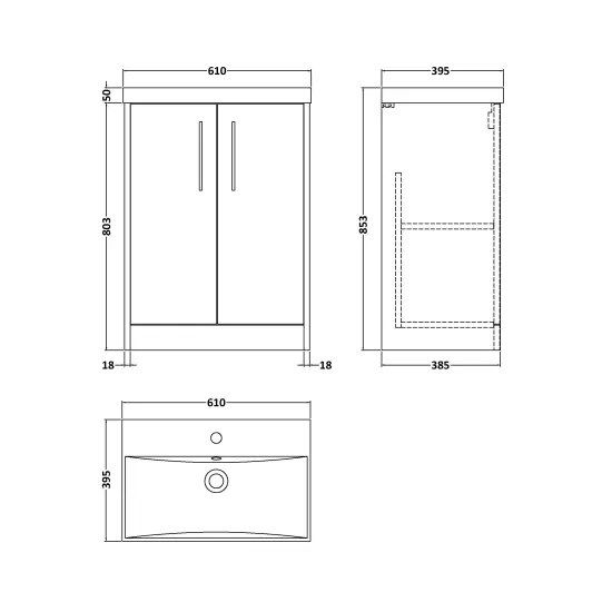 Hudson Reed Juno 600mm Floor Standing 2-Door Vanity Unit with Basin