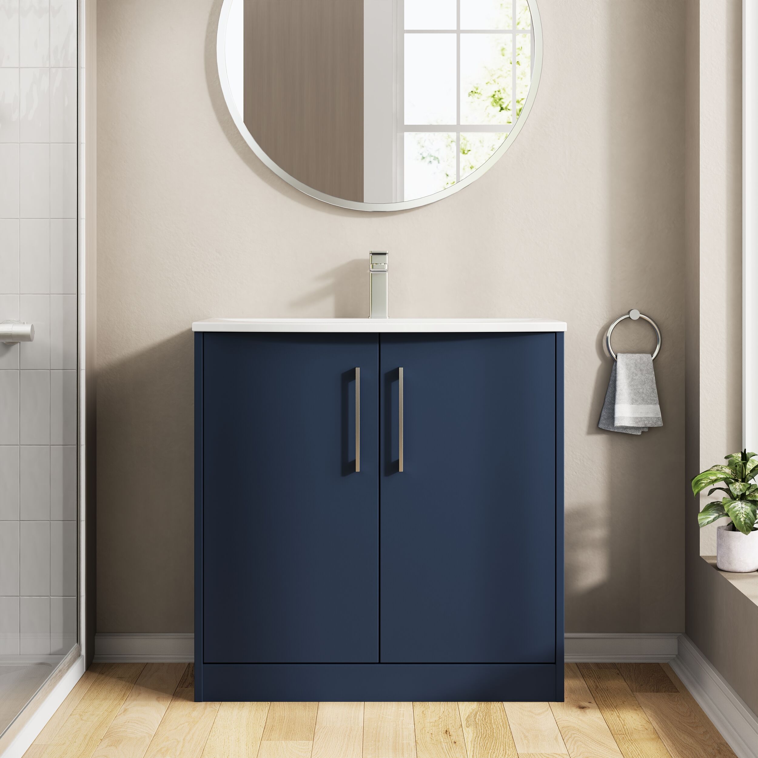 Hudson Reed Juno 800mm Floor Standing 2-Door Vanity & Basin 4 - Midnight Blue