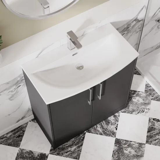 Hudson Reed Juno 800mm Floor Standing 2-Door Vanity & Curved 1 Tap Hole Basin - Graphite Grey