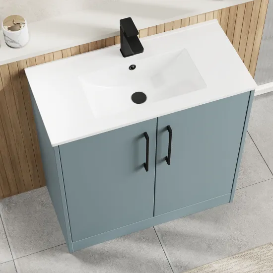 Hudson Reed Juno 800mm Floor Standing 2-Door Vanity & Minimalist 1 Tap Hole Basin - Coastal Grey