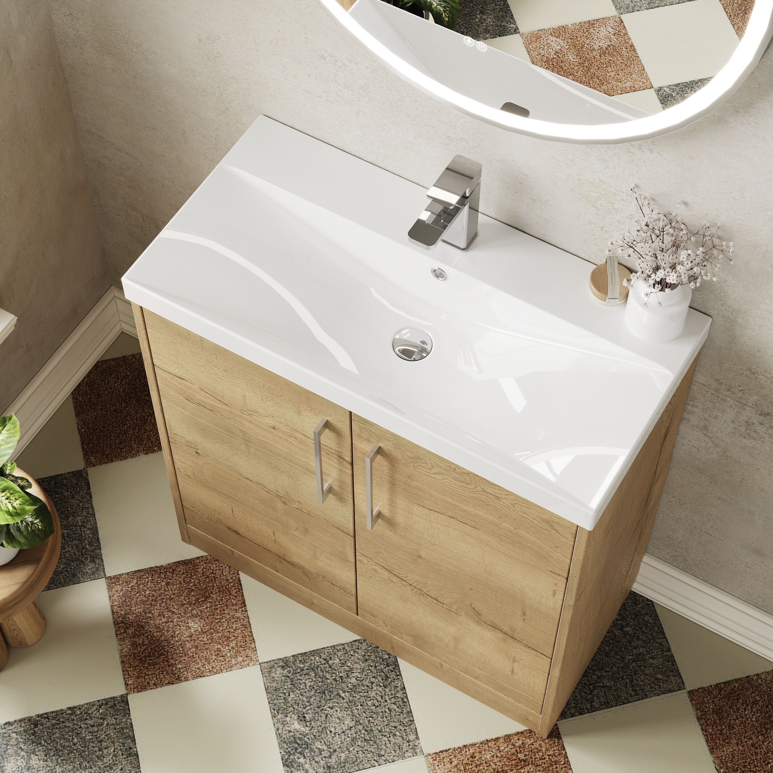 Hudson Reed Juno 800mm Floor Standing 2-Door Vanity & Thin-Edge 1 Tap Hole Basin - Autumn Oak
