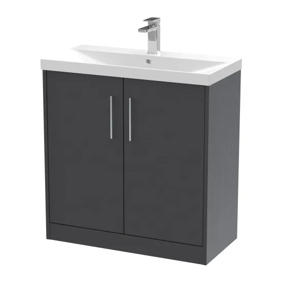 Hudson Reed Juno 800mm Graphite Grey Woodgrain Floor Standing 2-Door Vanity Unit with 1 Tap Hole Basin