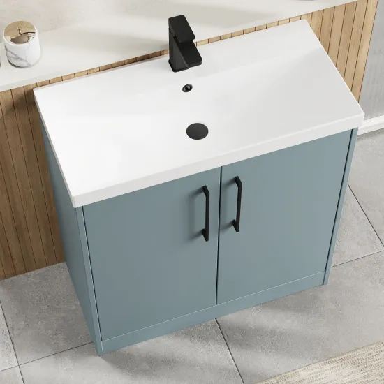 Hudson Reed Juno 800mm Floor Standing 2-Door Vanity & Thin-Edge 1 Tap Hole Basin - Coastal Grey