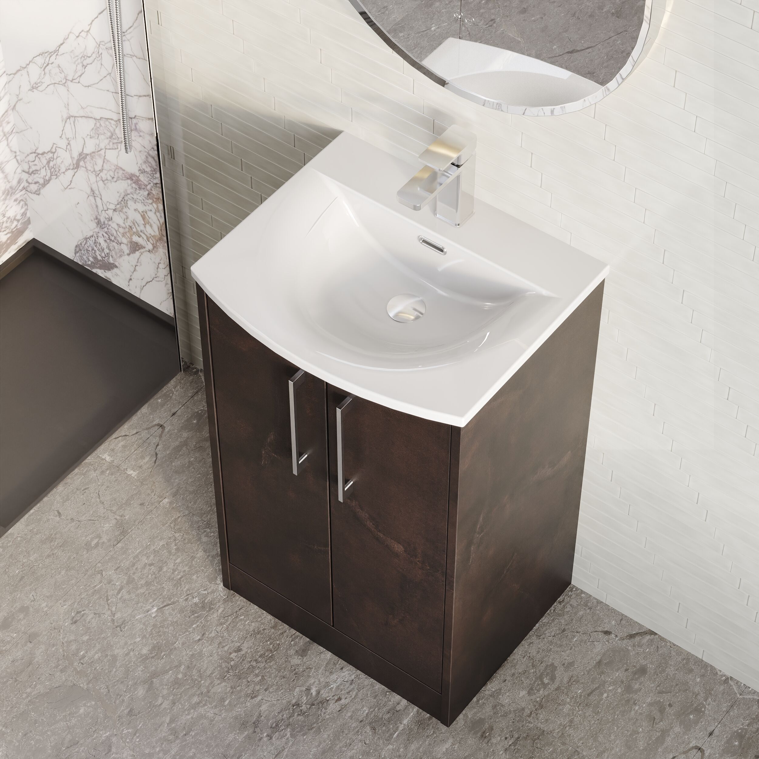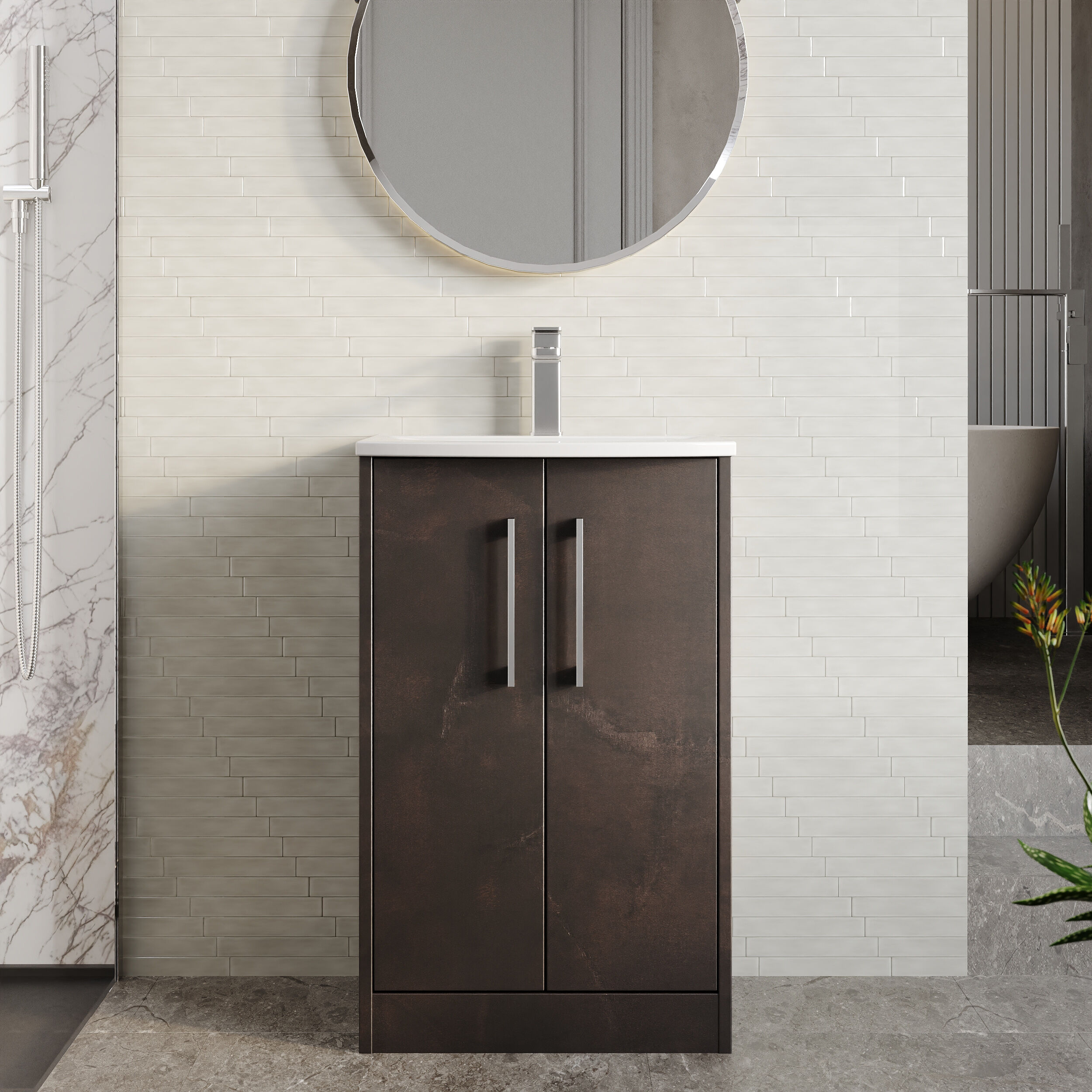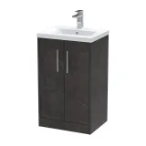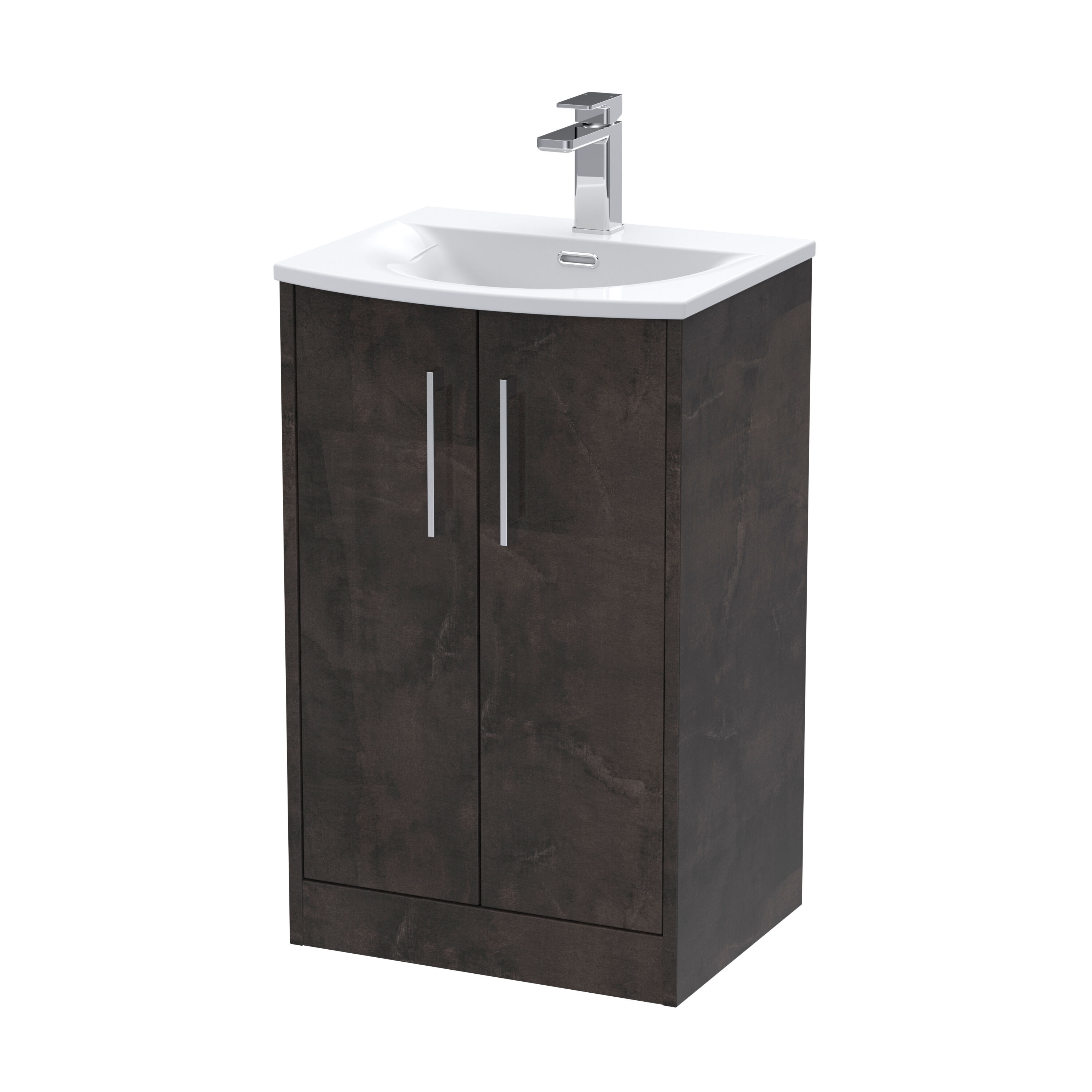 Hudson Reed Juno Floor Standing 2 Door Vanity Basin Unit & Curved Ceramic Basin, 500mm - Metallic Slate
