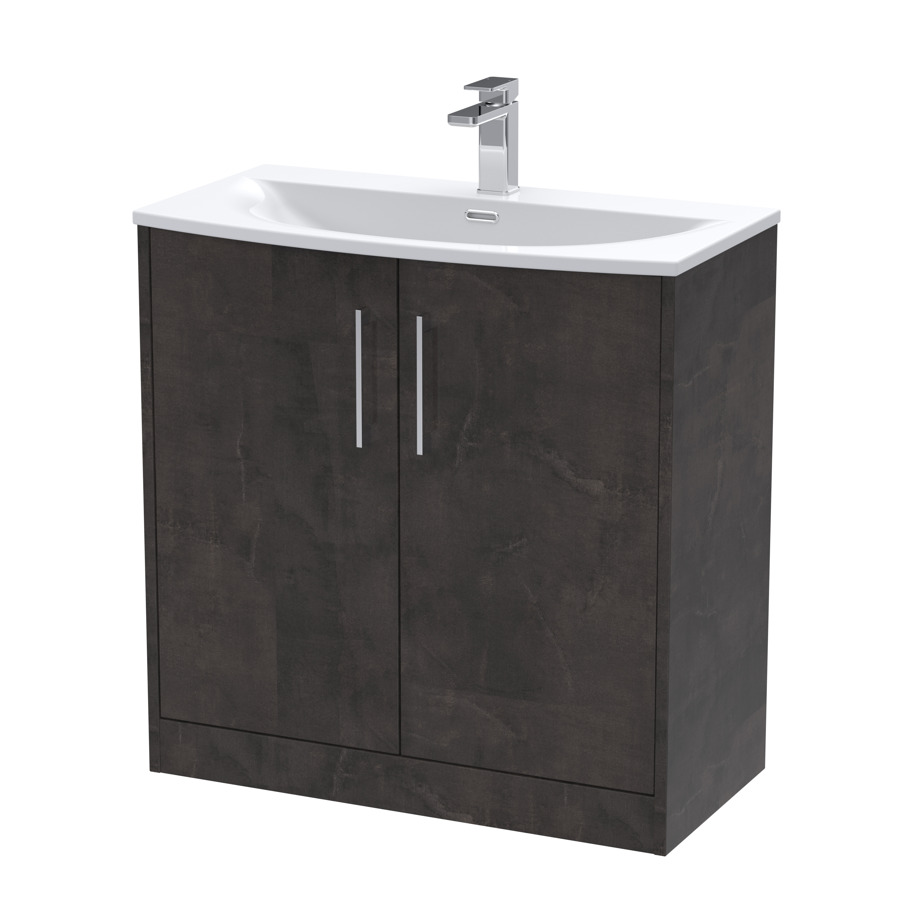 Hudson Reed Juno Floor Standing 2 Door Vanity Basin Unit & Curved Ceramic Basin, 800mm - Metallic Slate