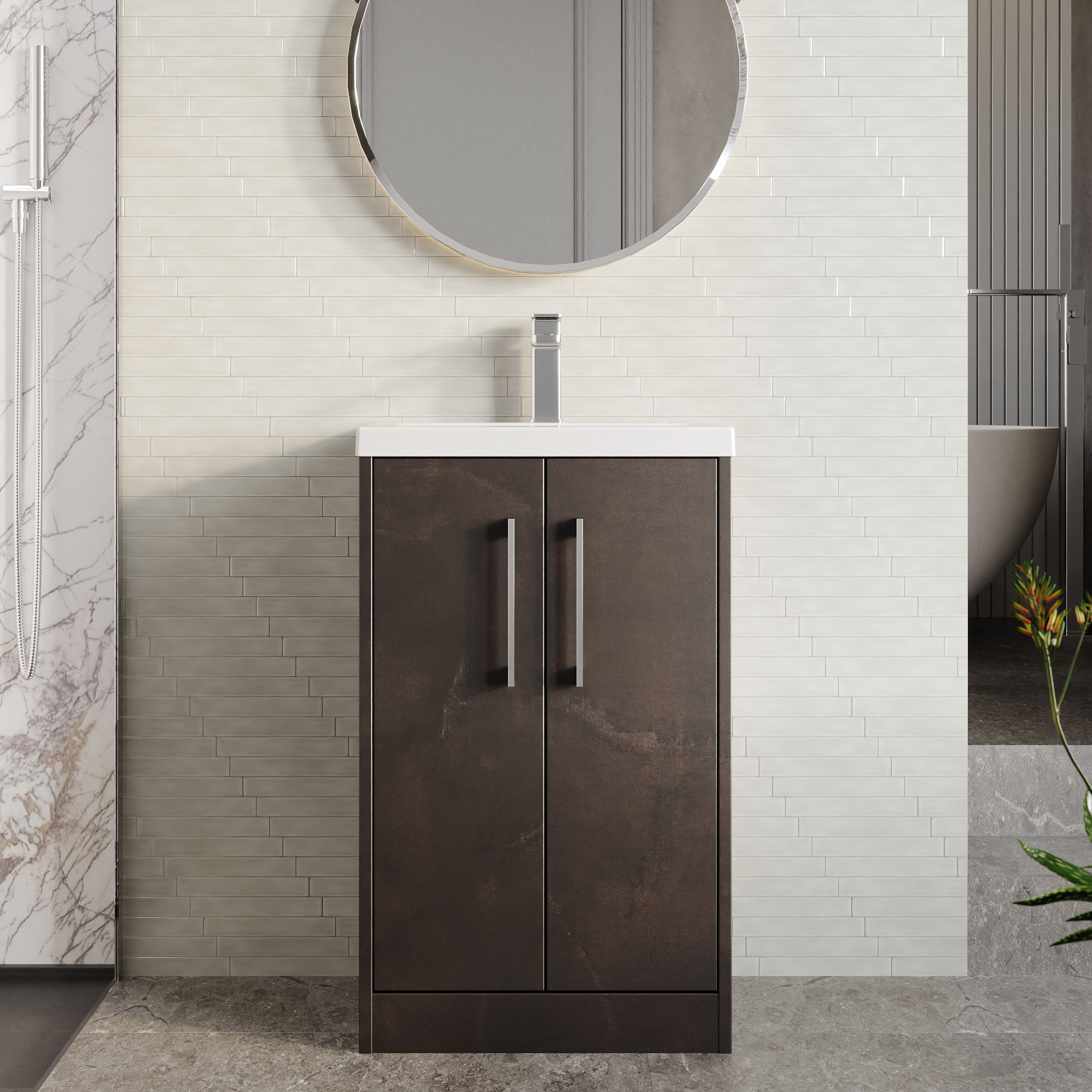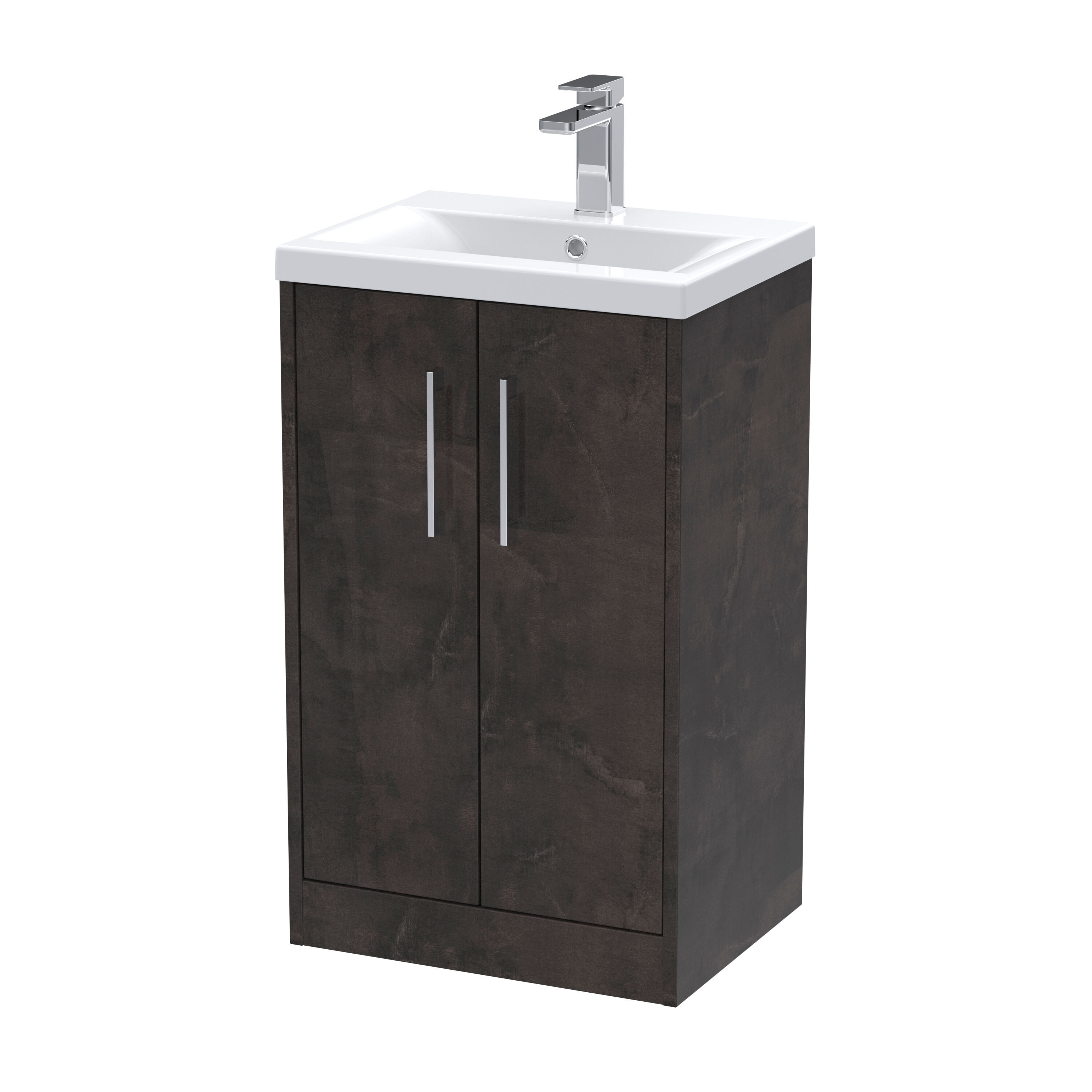 Hudson Reed Juno Floor Standing 2 Door Vanity Basin Unit & Mid-Edge Ceramic Basin, 500mm - Metallic Slate