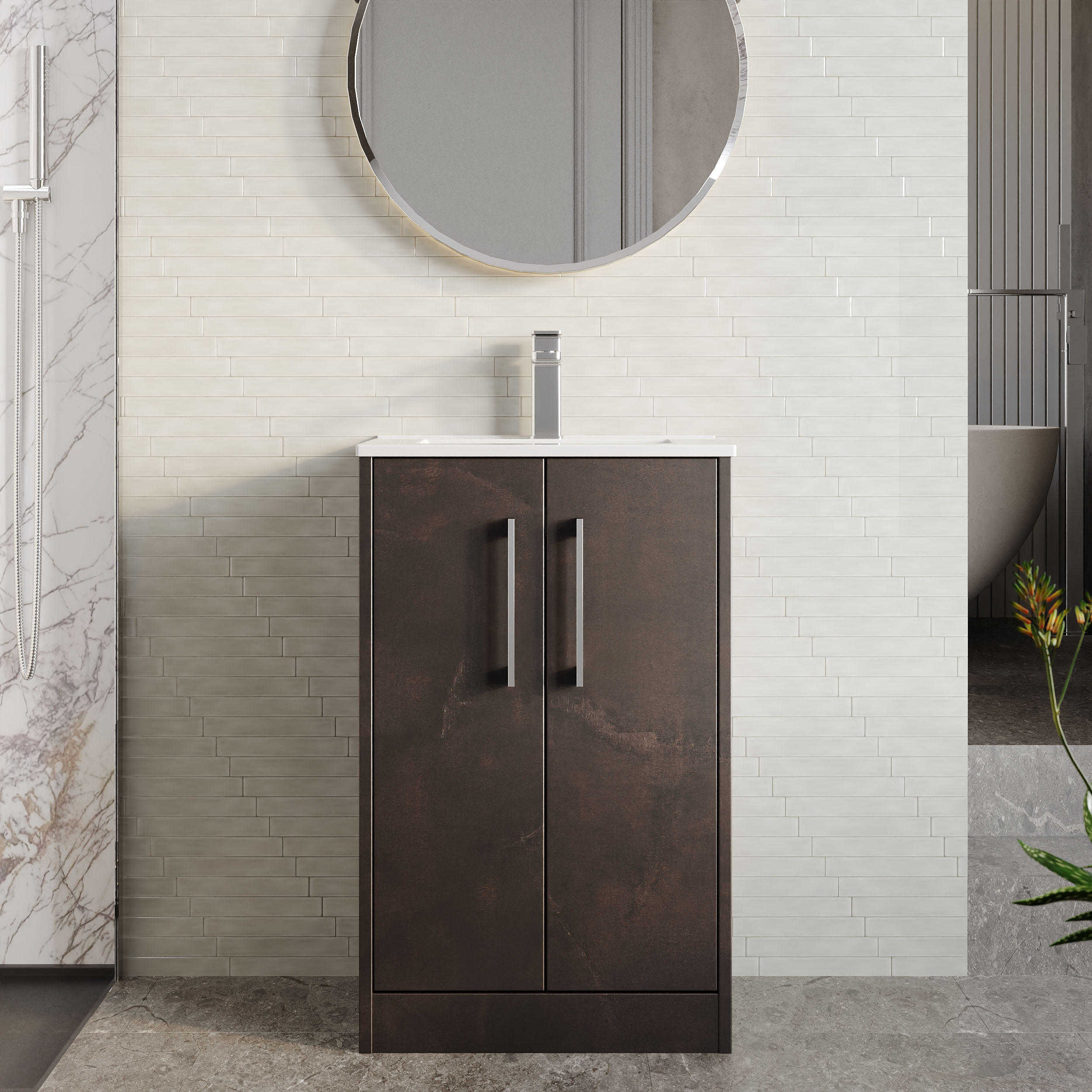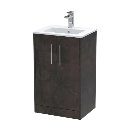 Hudson Reed Juno 510mm Metallic Slate Floor Standing 2 Door Vanity Basin Unit With Handles