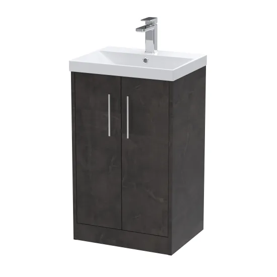 Hudson Reed Juno 510mm Metallic Slate Floor Standing 2 Door Vanity Basin Unit With Handles