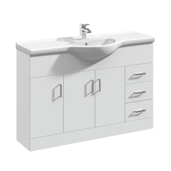 Arley Kass 1200mm 3 Door 3 Drawer Gloss White Floor Standing Vanity Unit With Basin