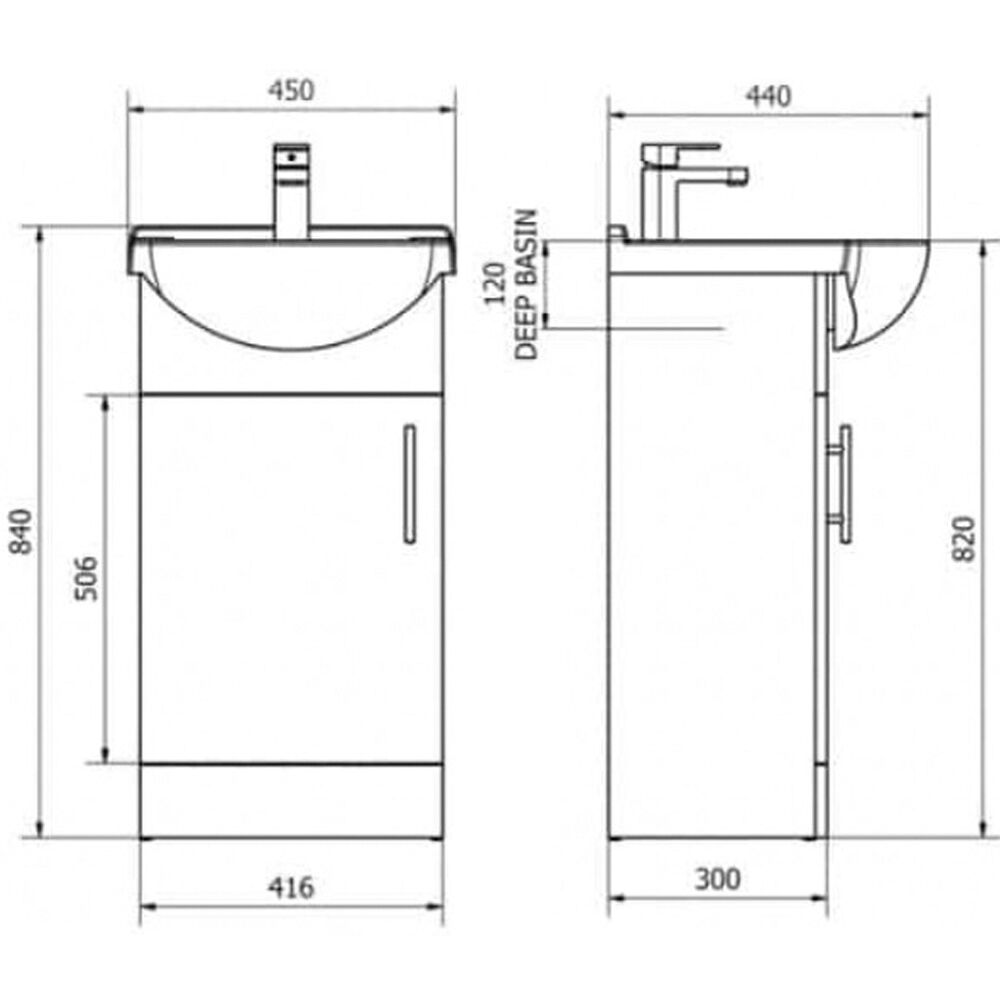 • Basin width: 450mm