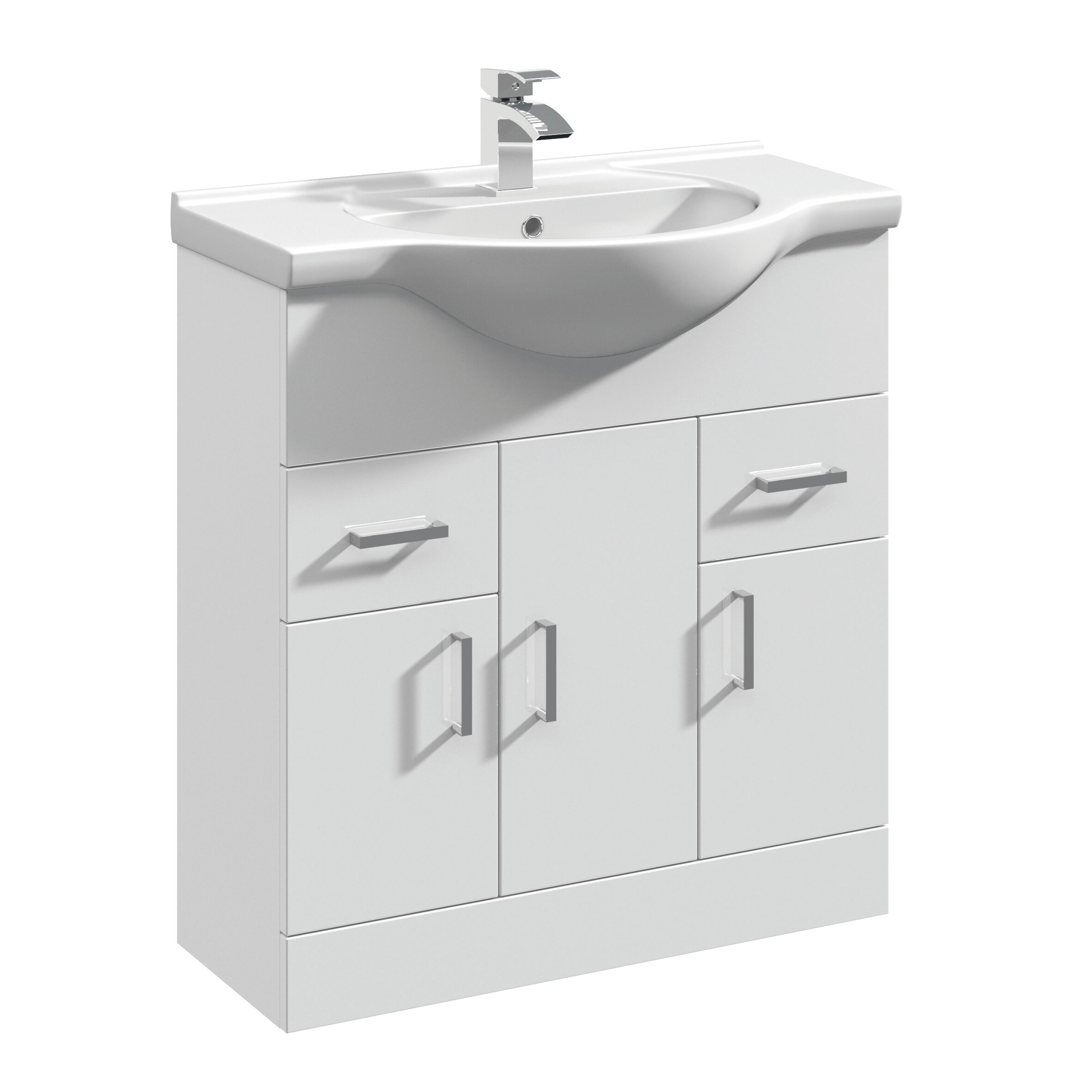 Arley Kass 750mm 3 Door 2 Drawer Gloss White Floor Standing Vanity Unit With Basin