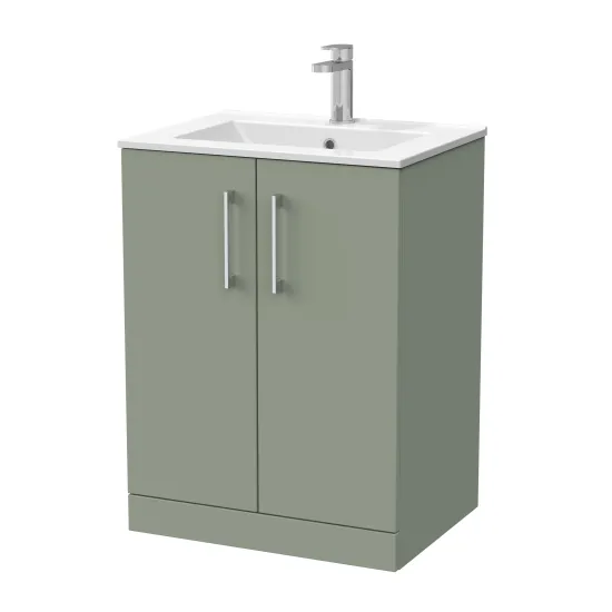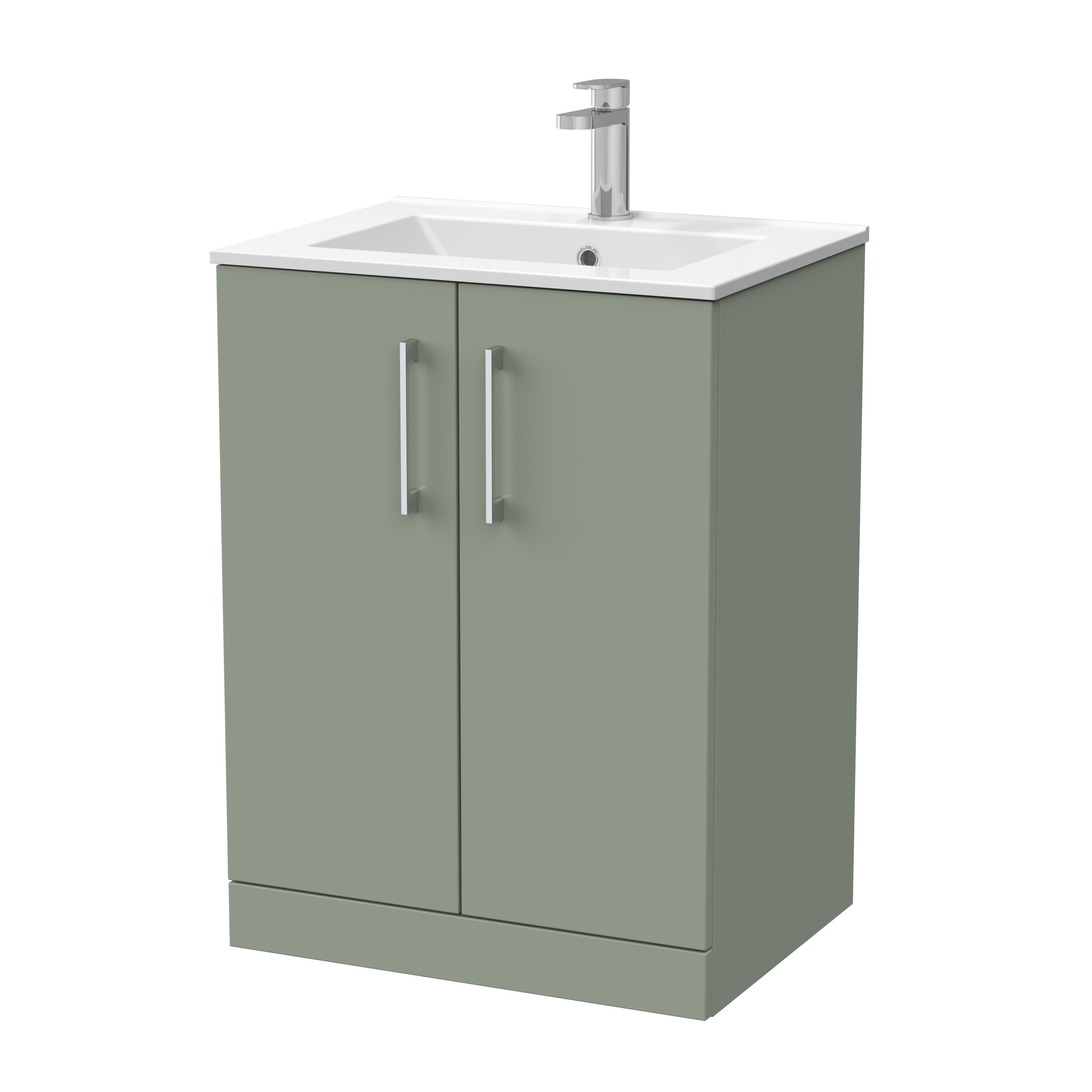 nuie Lux Kivo 600mm 2-Door Floor Standing Unit with a 1 Tap Hole Minimalist Basin Top - Fern Green