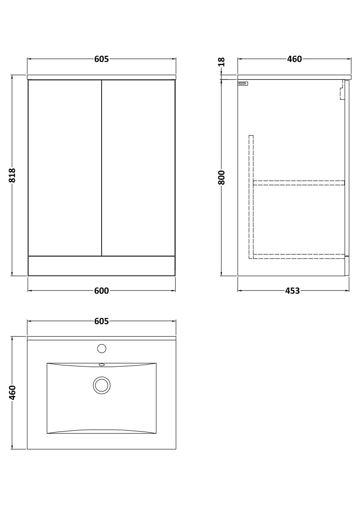 Kivo 600mm 2-Door Floor Standing Unit with a 1 Tap Hole Minimalist Basin Top
