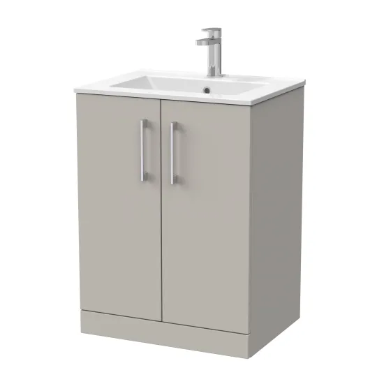 nuie Lux Kivo 600mm 2-Door Floor Standing Unit with a 1 Tap Hole Minimalist Basin Top - Pebble Grey