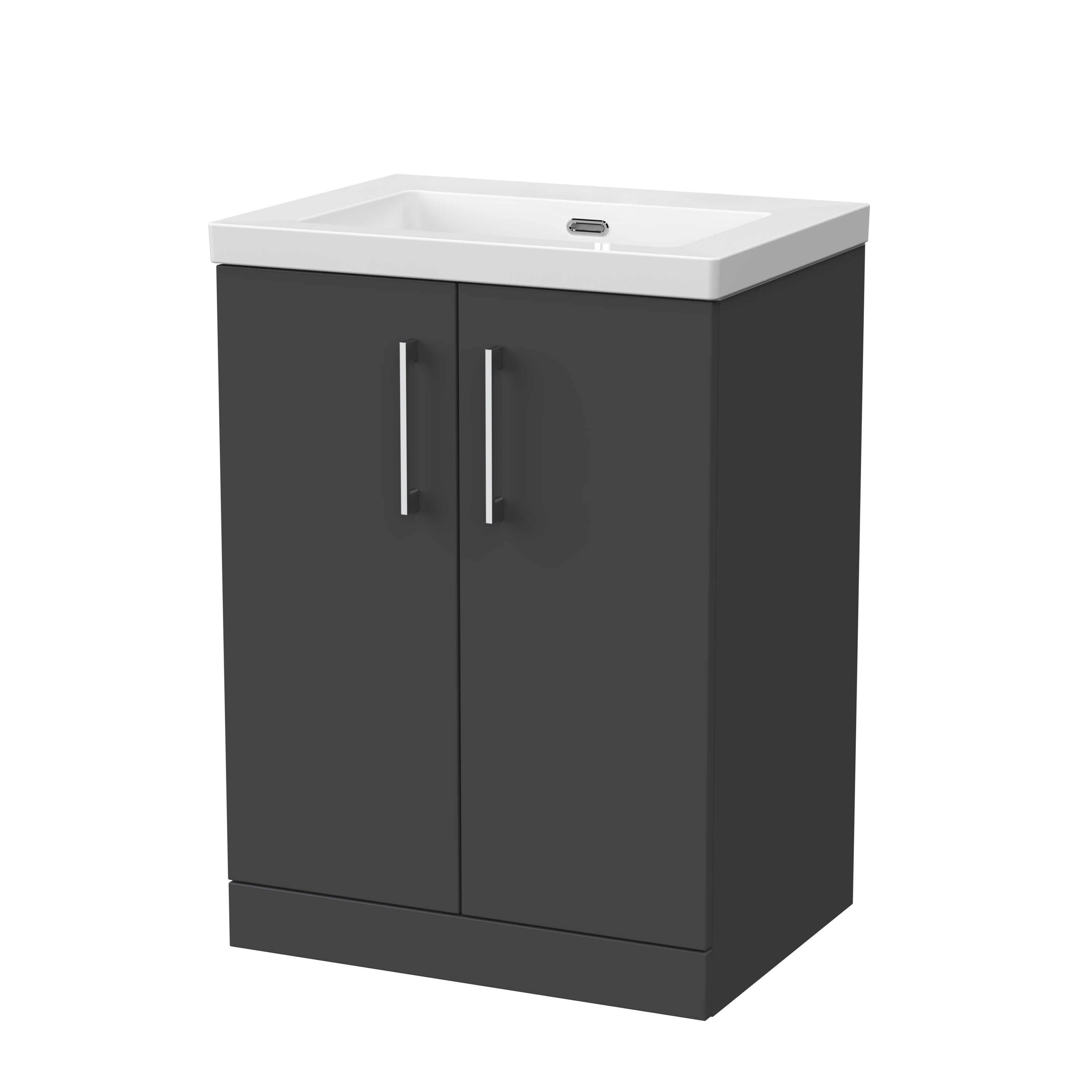 nuie Lux Kivo 600mm 2-Door Floor Standing Unit with a Contemporary Basin - 0 Tap Holes - Soft Black