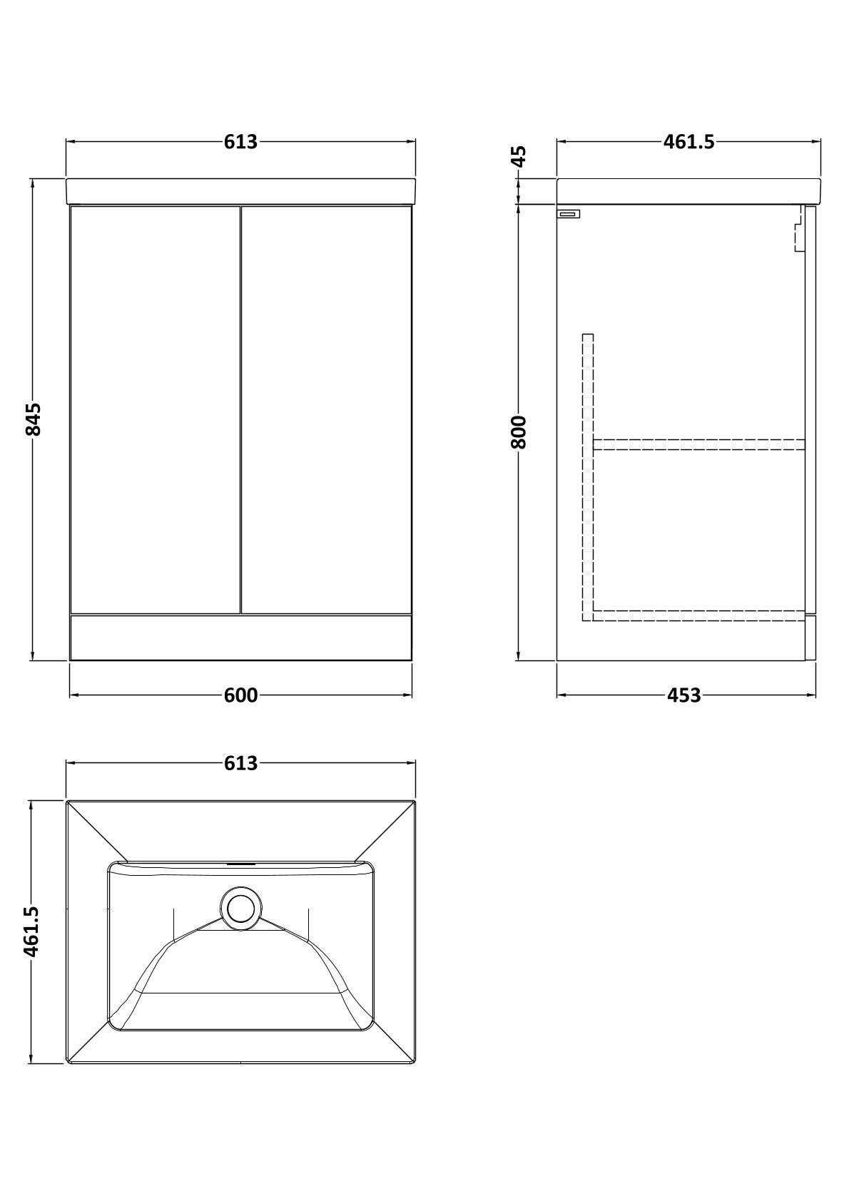 Kivo 600mm 2-Door Floor Standing Unit with a Contemporary Basin - 0 Tap Holes