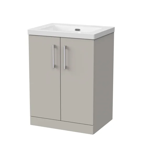 nuie Lux Kivo 600mm 2-Door Floor Standing Unit with a Contemporary Basin - 0 Tap Holes - Pebble Grey
