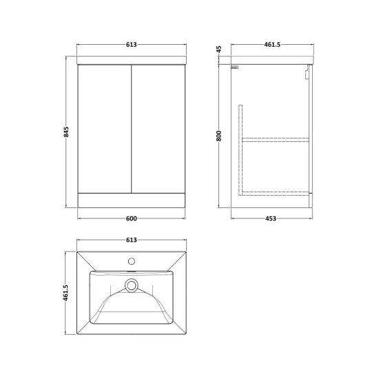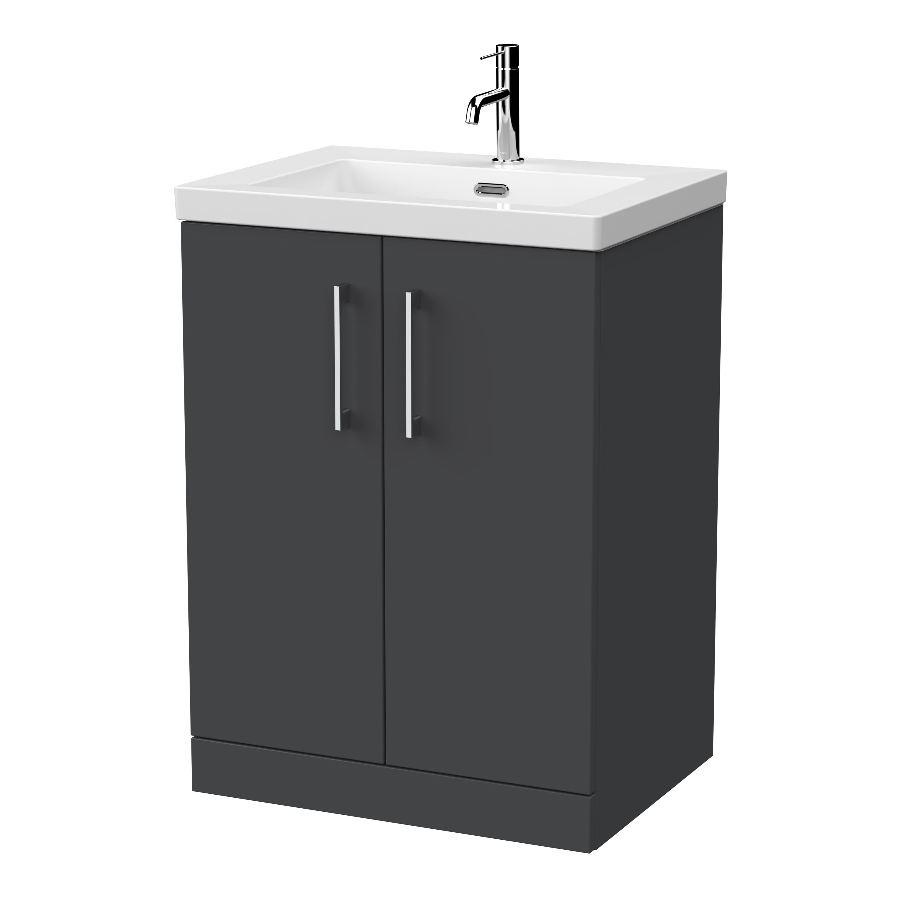 nuie Lux Kivo 600mm 2-Door Floor Standing Unit with a Contemporary Basin - 1 Tap Hole - Soft Black