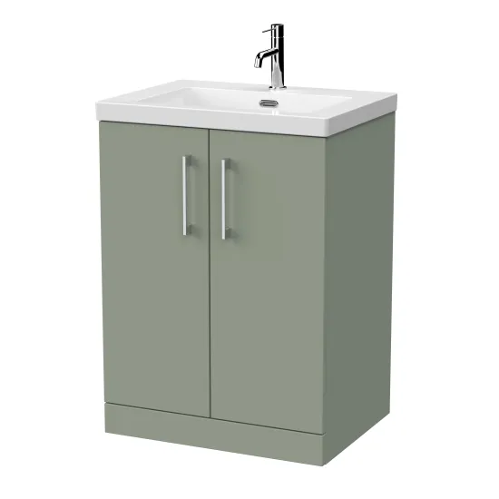 nuie Lux Kivo 600mm 2-Door Floor Standing Unit with a Contemporary Basin - 1 Tap Hole - Fern Green