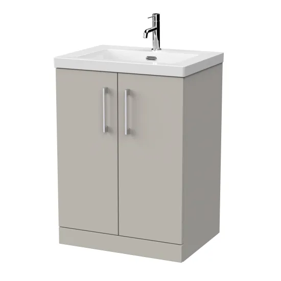 nuie Lux Kivo 600mm 2-Door Floor Standing Unit with a Contemporary Basin - 1 Tap Hole - Pebble Grey