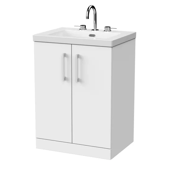 nuie Lux Kivo 600mm 2-Door Floor Standing Unit with a Contemporary Basin - 3 Tap Holes - Matt White