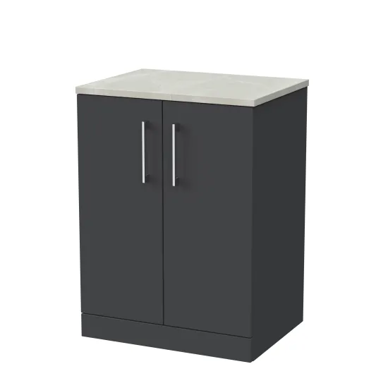 nuie Lux Kivo 600mm 2-Door Floor Standing Unit with a Laminate Worktop - Soft Black