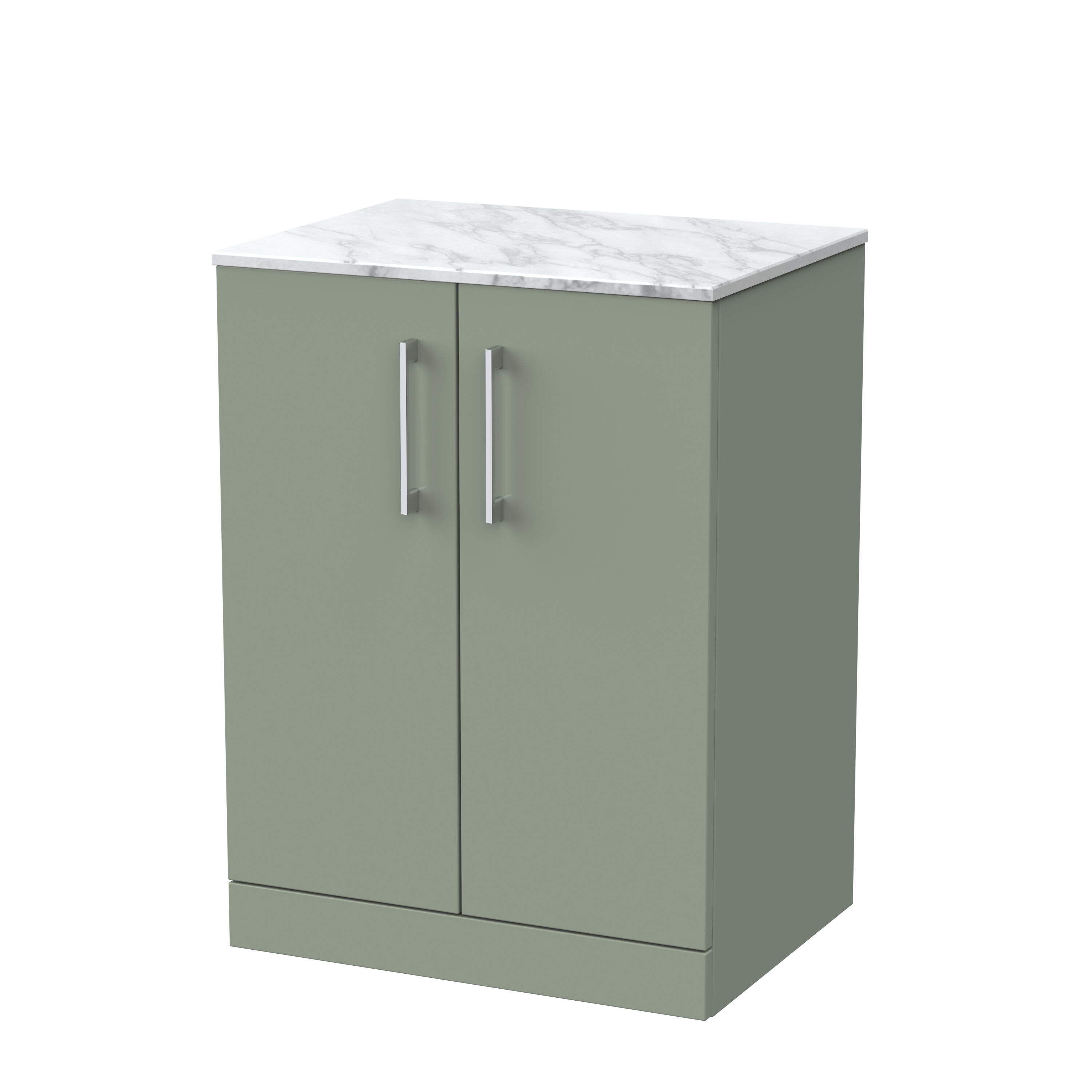 nuie Lux Kivo 600mm 2-Door Floor Standing Unit with a Marble Top in Carrera - Fern Green