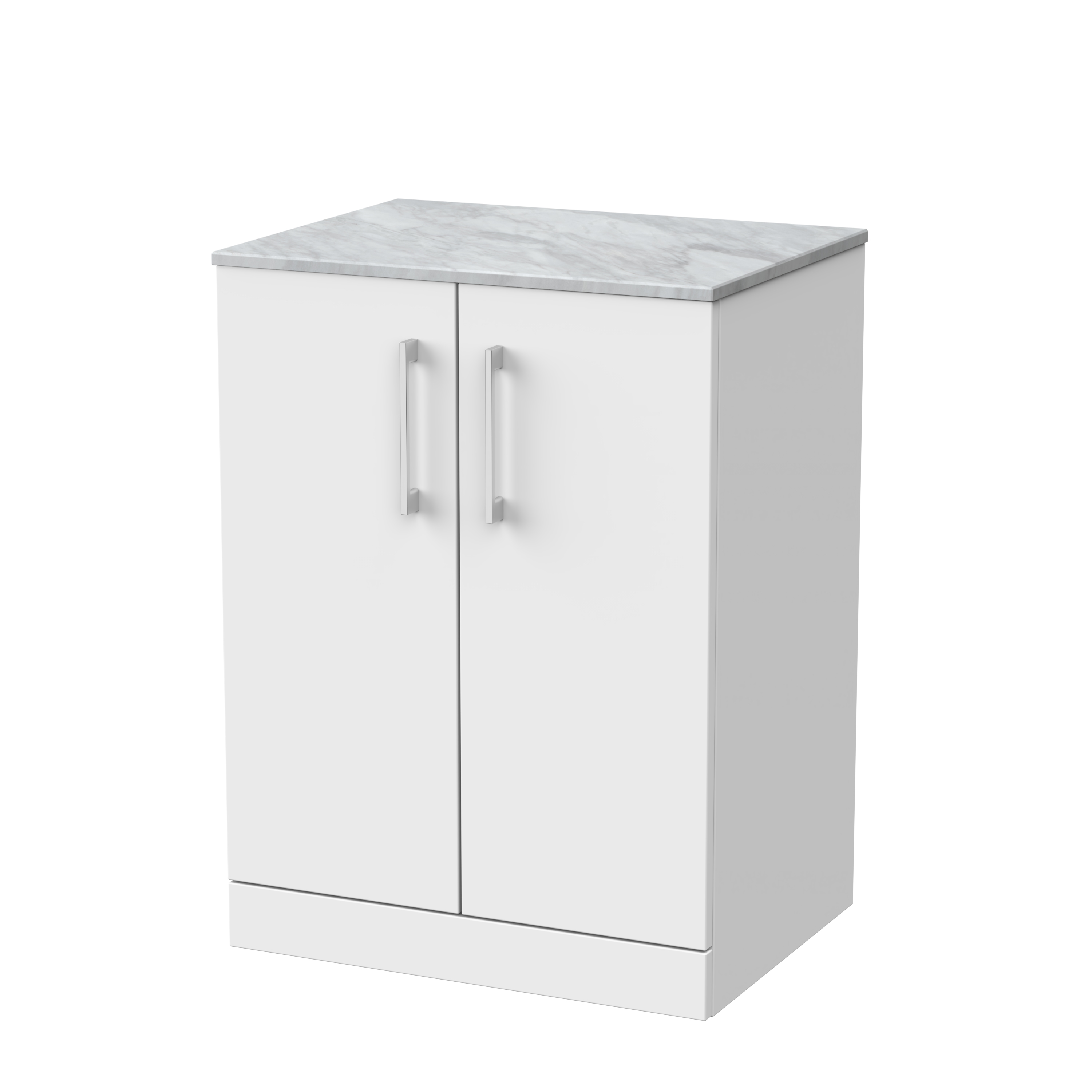 nuie Lux Kivo 600mm 2-Door Floor Standing Unit with a Marble Top in Grey - Matt White