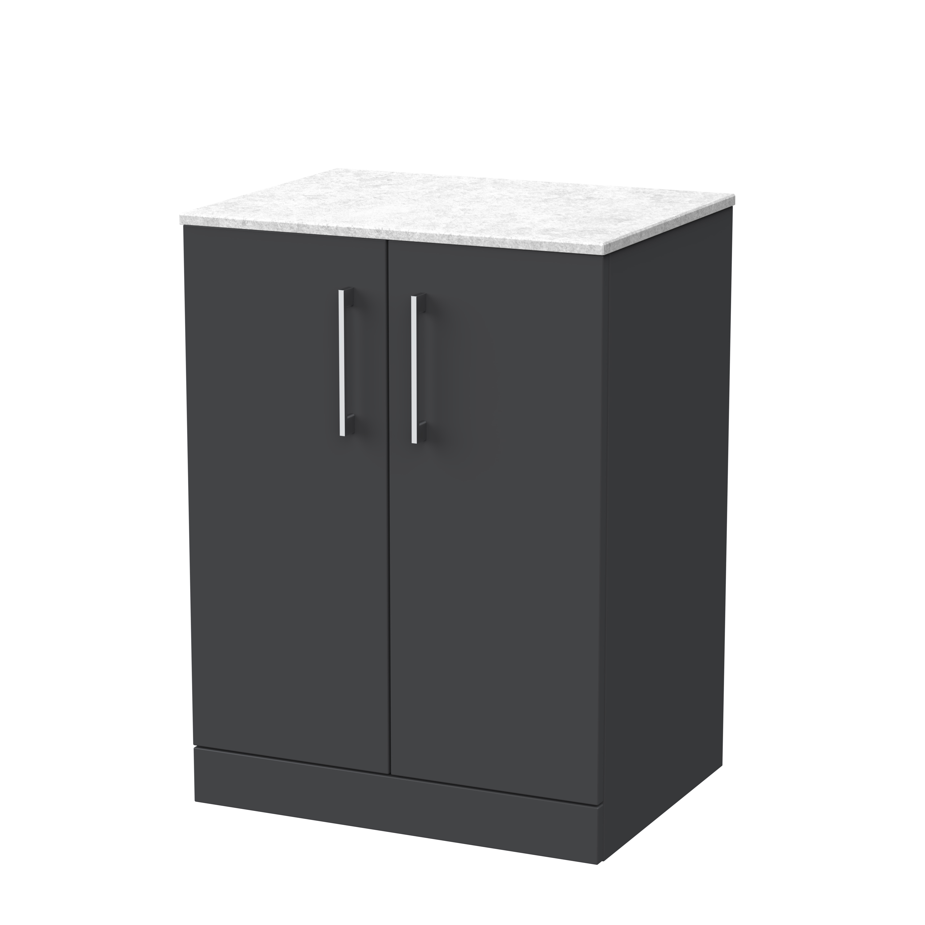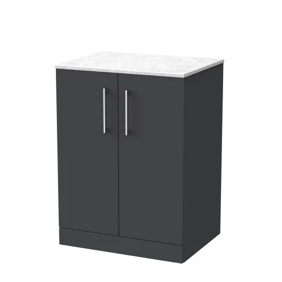 nuie Lux Kivo 600mm 2-Door Floor Standing Unit with a Marble Top in White - Soft Black