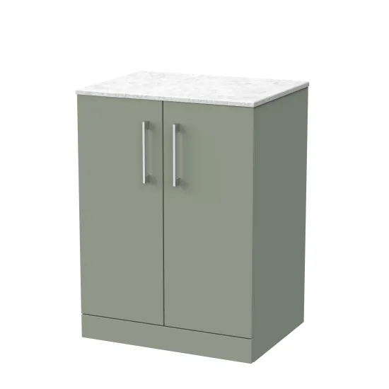 nuie Lux Kivo 600mm 2-Door Floor Standing Unit with a Marble Top in White - Fern Green