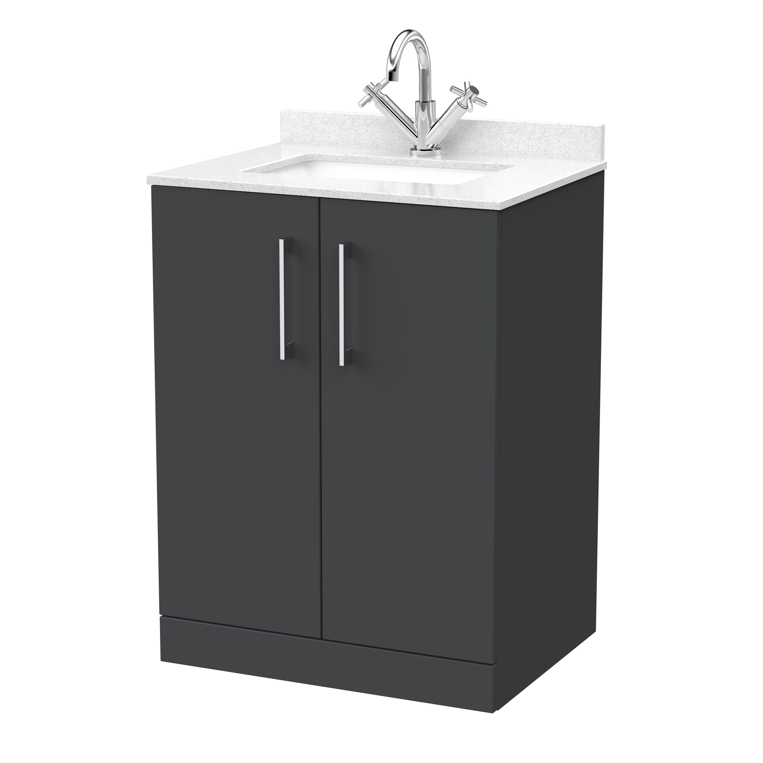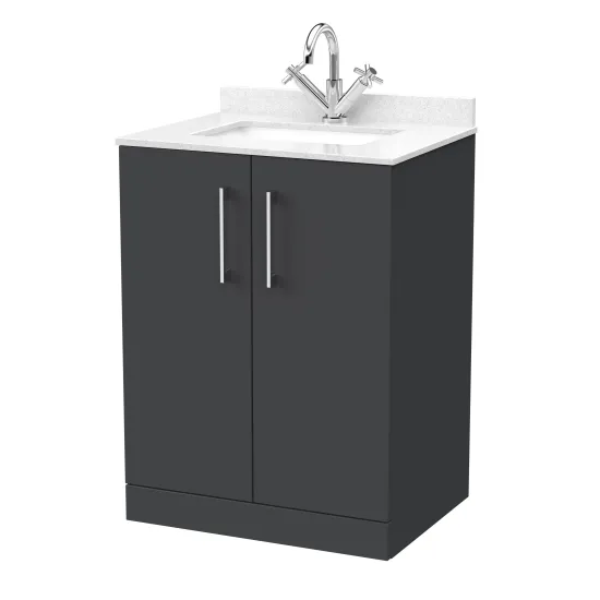 nuie Lux Kivo 600mm 2-Door Floor Standing Unit with a Single Bowl Marble Top 1 Tap Hole in White - Soft Black