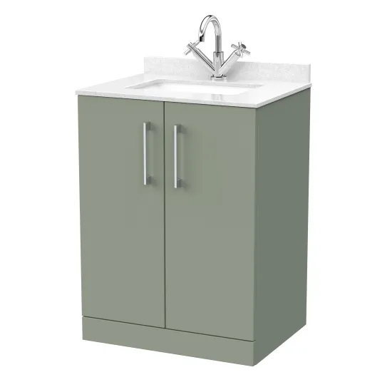 nuie Lux Kivo 600mm 2-Door Floor Standing Unit with a Single Bowl Marble Top 1 Tap Hole in White - Fern Green