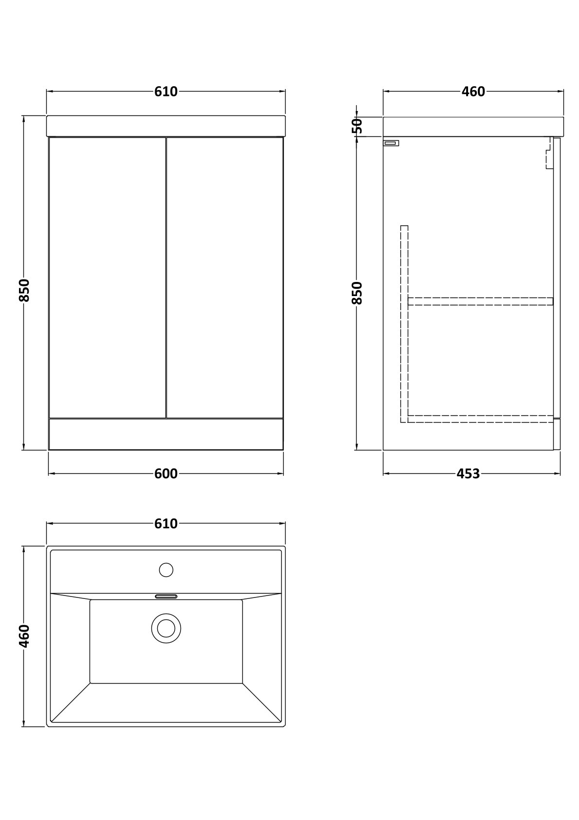 Kivo 600mm 2-Door Floor Standing Unit with a Thin-Edge Basin - 1 Tap Hole