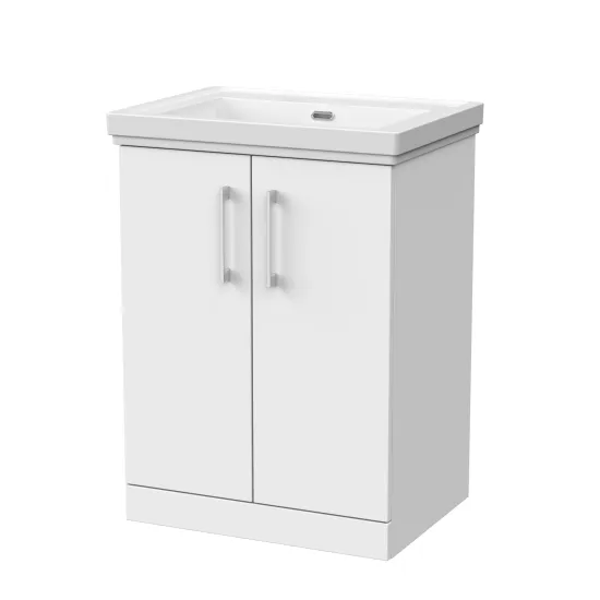 nuie Lux Kivo 600mm 2-Door Floor Standing Unit with a Traditional Fireclay Basin - 0 Tap Holes - Matt White