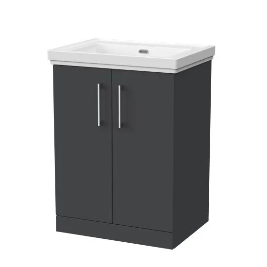 nuie Lux Kivo 600mm 2-Door Floor Standing Unit with a Traditional Fireclay Basin - 0 Tap Holes - Soft Black